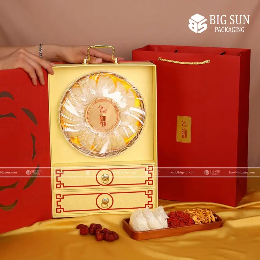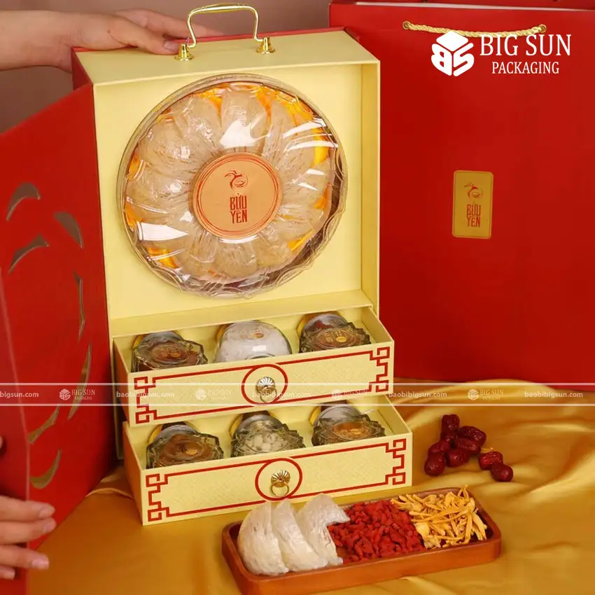 Khám phá mẫu hộp yến sào Bửu Yến Nhất Phẩm – cảm hứng cho hộp đựng yến vương giả, đẳng cấp. Big Sun chuyên gia công hộp yến cao cấp, ép kim tinh xảo.