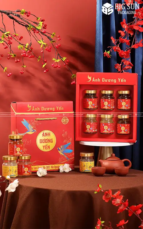 Trong ngành hàng yến sào, một chiếc hộp đựng yến được thiết kế chỉn chu không chỉ là công cụ bảo quản mà còn là cầu nối gắn kết thương hiệu với khách hàng. Mẫu hộp đựng 6 hũ yến chưng “Ánh Dương Yến” chính là minh chứng cho thấy sự đơn giản, tinh tế có thể tạo nên sức hút mạnh mẽ, mang đến một giải pháp bao bì vừa hiệu quả, vừa thẩm mỹ.