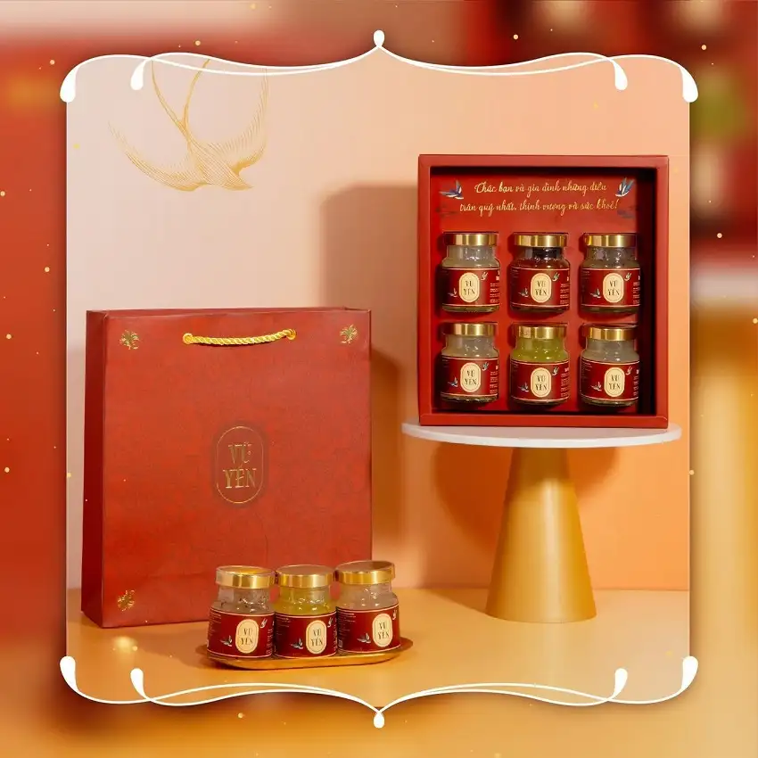 Sử dụng một mẫu bao bì ấn tượng như “Vũ Yến” là cách các doanh nghiệp yến sào thể hiện sự chuyên nghiệp và cái tâm đặt vào từng sản phẩm. Một chiếc hộp quà đẹp mắt không chỉ giúp bán được hàng mà còn xây dựng lòng tin và sự yêu mến từ khách hàng.