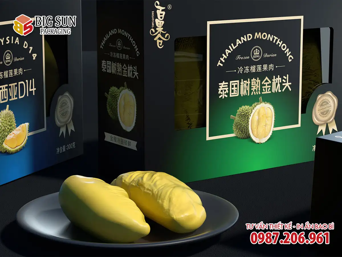 Thấu hiểu điều đó, Big Sun tự hào giới thiệu mẫu in hộp carton đựng sầu riêng thượng hạng – một thiết kế hội tụ đầy đủ sự sang trọng, tinh tế và công năng bảo vệ vượt trội.