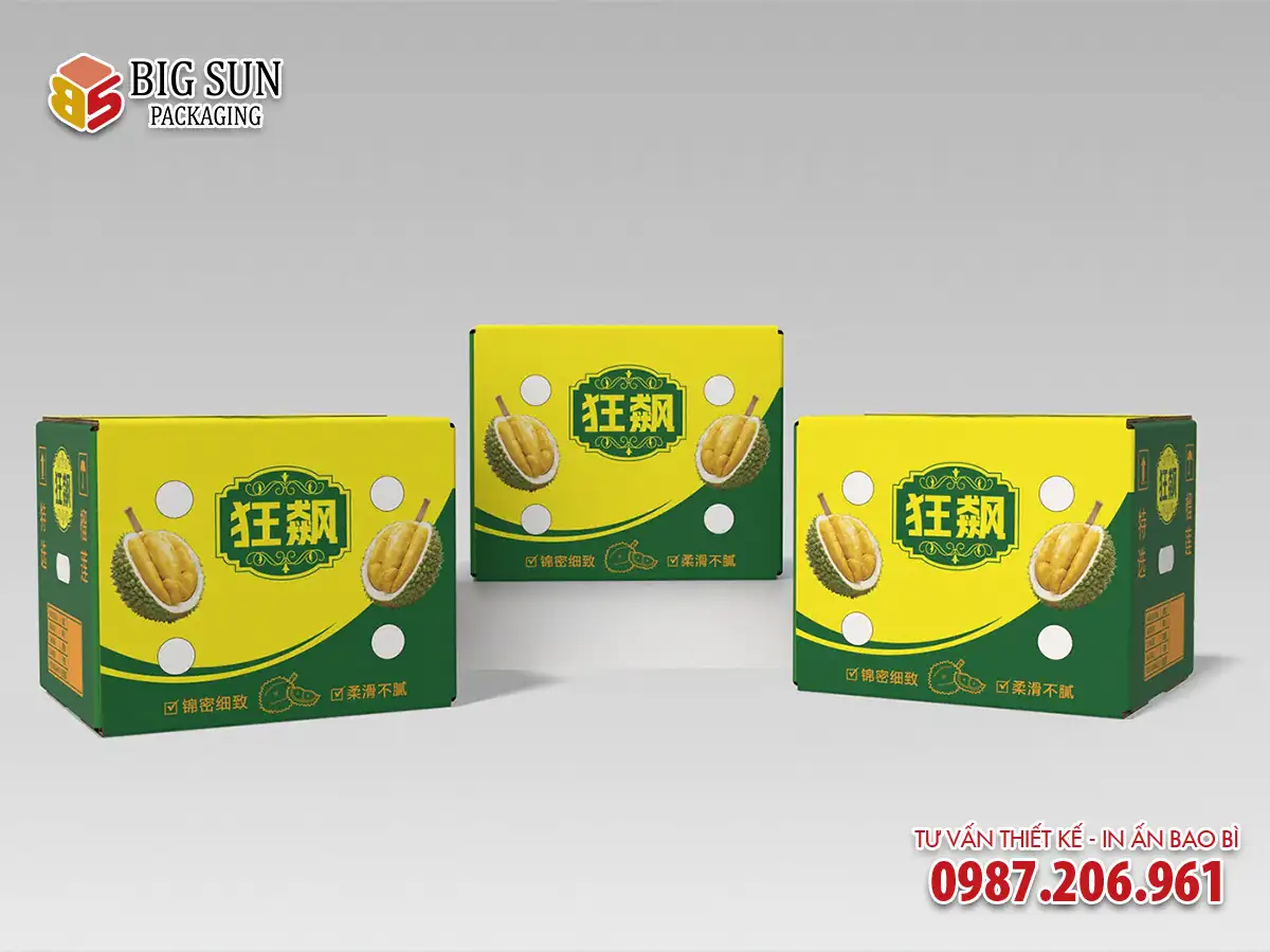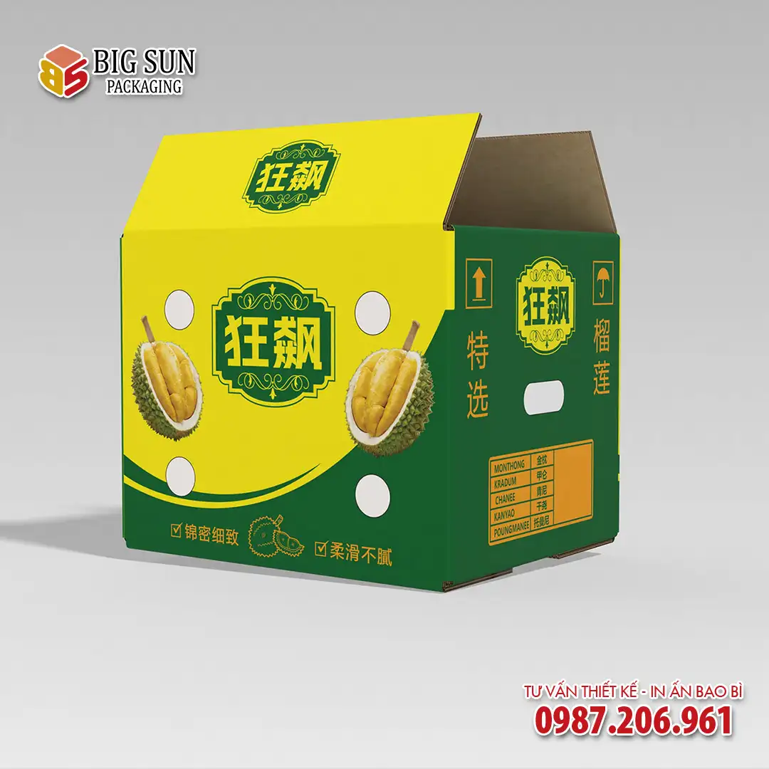 Tham khảo thêm nhiều mẫu in thùng carton đựng sầu riêng chuyên nghiệp khác tại Big Sun!
