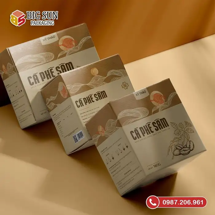 Khi kinh doanh bất kỳ sản phẩm nào thì bên cạnh việc chú trọng chất lượng các nhà sản xuất đều nên chú trọng đến hình ảnh bao bì. Hiện nay, bao bì giấy đã dần thay cho các mẫu bao bì nilon truyền thống với mục đích bảo vệ môi trường. Thay đổi này sẽ giúp bạn thay đổi diện mạo và nâng tầm sản phẩm. Dưới đây là thông tin chi tiết hơn về mẫu hộp đựng cà phê Sâm của Doanh nghiệp Kỳ Thảo bạn có thể tham khảo trước khi chọn in vỏ hộp cho sản phẩm của mình.